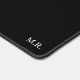 Black Desk Mat with custom monogram initials - minimal custom desk mat,minimalist personal large desk mat,minimalistic office desk mat,personalised black desk mat,plastic computer desk mat,customised initialled monogram initials,add your own letters,personalised monogrammed text,simple stylish classic classy design,cool plain dark writing aesthetic