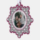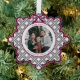 Send warm holiday wishes in style with this preppy Christmas ornament featuring a classic black diamond pattern with charming coquette bow in burgundy, that beautifully decorates your family photo.