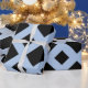 A stylish, geometric pattern of large and small black diamonds on a light blue background. The baby blue forms a lattice which separates the black diamond shapes.
