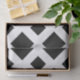 A bold, geometric pattern of large and small black diamonds on a white background. The white forms a lattice which separates the diamond shapes.