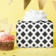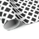 A bold, geometric pattern of large and small black diamonds on a white background. The white forms a lattice which separates the diamond shapes.