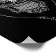 This elaborate DJ sugar skull design is decorated with intricate swirls and dot patterns. Headphones sit on top of the skull with two wires hanging below. This aggressive Day of the Dead inspired image is perfect for musicians and music lovers.