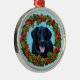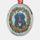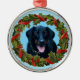 A jolly dobie with natural ears peeks through a Christmas wreath. This image is available on other products such as greeting cards and postage stamps, in my Zazzle store.