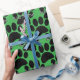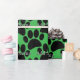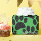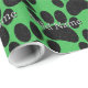 Cartoon dog paw print in black. Custom gift wrapping paper rolls. Green background with distressed effect applied the pattern. Edit name to customise. Good for party decor.