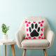 Original design of a dog paw print with heart shapes. Decorative pillow.
