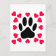 Black Dog Paw Print With Heart Shapes Postcard