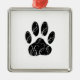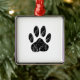Black Dog Paw Print With White Flourishes Metal Tree Decoration