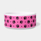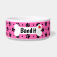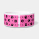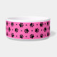 Black dog paw prints and hearts pattern with a custom pink background colour on dog food and water bowls. This pattern can be easily enlarged or reduced to your preference and pick your favourite background colour. Personalise this dish with your dog's name printed on the white dog bone accented with a red heart. Cute gift idea for any dog parent!
