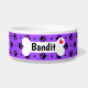 Black dog paw prints and hearts pattern with a custom purple background colour on dog food and water bowls. This pattern can be easily enlarged or reduced to your preference and pick your favourite background colour. Personalise this dish with your dog's name printed on the white dog bone accented with a red heart. Cute gift idea for any dog parent!