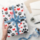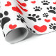 Black Dog Paw Prints And Red Hearts Custom Wrapping Paper