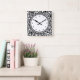 Black Dots & Circles Grid + your backgr. & text Square Wall Clock