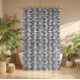 Black dots geometric pattern on white shower curtain