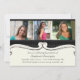 This graduation party announcement has a trendy black and white mini polkadots pattern in the background on the back. At the top on the backside, you can personalise this with three of your photographs. At the bottom, you can customise the text to be an invite/announcement of a graduation ceremony or a party to celebrate the graduation. On the front, you can add another photograph of the graduate. On the top left, there is a stylish black swirl badge with Class of 2012 written. You can customise the year to be whatever year you are graduating. This graduation announcement has a total of 4 photos that you can add, 3 on the back and 1 on the front.