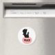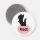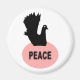 This magnet features a black silhouette of a fancy dove with a white eye, sitting on a pink oval shaped nest with the word peace written in black in the centre of the nest. The background is white but can be changed to any colour you like by clicking on the “customise it” button. This magnet would be great for the fridge or dishwasher. Remind the family that a little peace once in a while would be no bad thing.