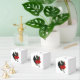 A small black dragon is nestled among vibrant red roses set against a clean white background. Perfect for those who love mythical charm with a classic twist.