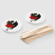A small black dragon is nestled among vibrant red roses set against a clean white background. Perfect for those who love mythical charm with a classic twist.