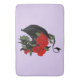 Black and green dragon sitting amongst red roses in a backdrop o lavender