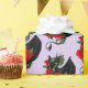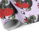 A black and green dragon sitting amongst red roses in a backdrop of lavender