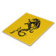 A black dragon in stencil or tatoo style is centred on a gold background for this tile.