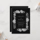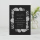 This design features a striking monochrome aesthetic with delicate white roses and botanical foliage set against a deep black background. The high-contrast palette creates a sophisticated mood ideal for formal evening events. Graceful leaves and soft petals provide a romantic touch to the dramatic, dark backdrop.