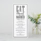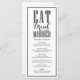 Eat, drink and be married. Complete your event tablescape with this customisable wedding menu card. It features modern calligraphy and classic typography, perfect for any wedding theme. Personalise by adding your details. Matching items are available. This black and white menu card is available in other colours.