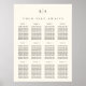 Share your wedding reception seating details in elegant style with this monogram wedding seating plan in warm ivory ecru with your initials in traditional serif black lettering, bisected by a thin vertical line. Customise the header (shown with "your seat awaits") and up to 12 tables.