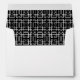 Created to coordinate with the "Deco Joy Frame" holiday card collection, this elegant envelope features a delicate, deco-inspired frame and space for the card recipient's name and address. There is space on the back flap for the customer's address. The inside of the envelope features a coordinating deco pattern on a solid black background.