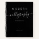 Black Elegant Modern Calligraphy Monogram Name Notebook. Personalised hand lettering practice notebook with cursive practice or lettering guidelines and white space for modern calligraphy art and handlettering designs. Customise notebook with your name. Change notebook paper style by selecting gridlines or other customise menu options.