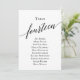 This is an elegant script table number. This table number is double sided. You'll only need to type in the names on one side. They'll be copied automatically on the other one.