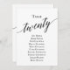 This is an elegant script table number. This table number is double sided. You'll only need to type in the names on one side. They'll be copied automatically on the other one.