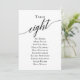 Black Elegant Script Table Number 8 Seating Chart