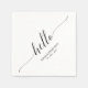 Add stylish detail to your special day with this personalised party napkin. This design features stylish typography "hello" in black with custom text. You can personalise the text for any event or party. Matching invitations and party supplies are available in my shop BaraBomDesign.