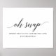 This black and white"oh snap, please help us to capture the love" poster is perfect for any kind of wedding, from elegant to simple, rustic to boho. This sign invites guests to share photos of your wedding on social networks using your hashtag with a black calligraphy script and two lines of custom text.