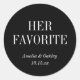 Black Elegant Wedding Favor Her Favorite Custom Classic Round Sticker