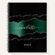 Black, emerald green and faux silver, agate, marble stone print as background. Personalise and add your name and a year. The name is written with a modern hand lettered style script.