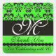 BLACK EMERALD GREEN DAMASK MONOGRAM Thank You Square Sticker