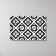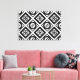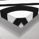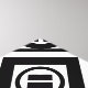 Bold geometric pattern features alternating thick and thin black diamonds with white space between them. The thick diamonds each contain a thin black circle with a thick equal sign at an angle inside. In contrast, the thin diamonds each contain a thick black circle that touches its edges with a thin tilted equal sign inside.