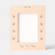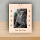 This wood etched picture frame has a black etched cat face with eyes and long whiskers at the top and rows of black cat paw prints on the sides Customise your text with the template at the bottom.