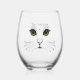 Black Etching Face of Cat Green Eyes Whiskers Stemless Wine Glass