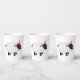 A black faced sheep with lots of white wool and a flower in its hair. This design looks really effective on these Paper Cups