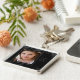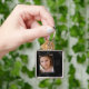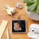 This square premium graduation photo key chain has a faded black damask background with a place for you to add your photograph on the left. On the right side, you can easily customise your information.
