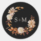 Black Fall Monogram Floral Wreath Envelope Seal. This elegant and rustic wedding envelope seal features hand-painted watercolor burnt orange and terracotta leaves, cream and beige dahlias, and beautiful rust-coloured roses perfect for a fall or autumn wedding! This design is part of the Autumn Romance collection that can be viewed by clicking on the above collection link.