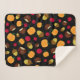 This cosy sherpa blanket features a colourful autumn harvest pattern with pumpkins, cranberries, acorns, and chestnuts on a black (customisable) background. Great for fall and thanksgiving home decor!