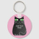 Black Fat Cat With Green Eyes Custom Text Pink Key Ring
