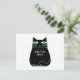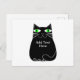 Black Fat Cat With Green Eyes Custom Text Postcard