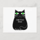Black fat cartoon cat with green eyes. Cute cat character. Custom postcards. Edit text to customise. Gift idea for cat lovers.
