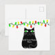 Black Fat Cat With Green Eyes Custom Text White Postcard