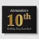 Black, Faux Gold 10th Birthday Party + Custom Name Guest Book