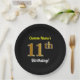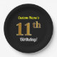 Black, Faux Gold 11th Birthday + Custom Name Paper Plate