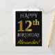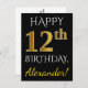 Black, Faux Gold 12th Birthday + Custom Name Postcard
